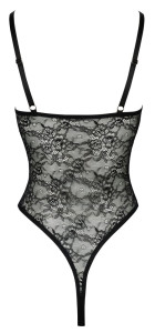 Το σώμα χωρίς καύλα Cottelli LINGERIE από λεπτή μαύρη χλωρίδα δαντέλα που αισθάνεται μαλακό και ελαστικό. Με κομψούς, ελαστικούς ιμάντες ώμου και διακοσμητικά δαχτυλίδια ασημί χρώματος στην περιοχή ντεκολτέ. Οι ιμάντες μπορούν να ρυθμιστούν για να ταιριάζουν. Τα επιπλέον ψηλά κομμένα πόδια δείχνουν τον αλήτη και τα πόδια προς το καλύτερο πλεονέκτημά τους. Σαπητικά ανοιχτά πάνω από τους μανιέρες των μουσώνων και στον καβάλο.