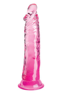 Το εύκαμπτο, διαφανές dildo 8" Cock with Balls της King Cock Clear έχει λεπτομερή, ρεαλιστικό σχεδιασμό πέους με ευδιάκριτες φλέβες και μεγάλο κεφάλι. Η ισχυρή βεντούζα κάτω από τις μπάλες κολλάει σταθερά σε οποιαδήποτε λεία επιφάνεια και επιτρέπει την απόλαυση χωρίς χέρια. Η βεντούζα επιτρέπει επίσης στο dildo να χρησιμοποιείται με τους περισσότερους ιμάντες και ιμάντες.