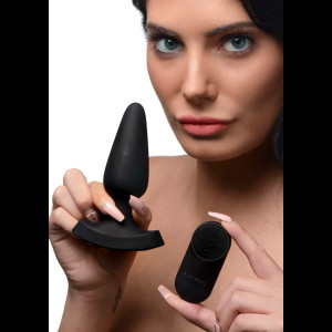 Αποκτήστε αυτό το μαύρο βύσμα δόνησης και περιποιηθείτε το πίσω μέρος σας με συναρπαστικές δονήσεις. Το βύσμα γλιστράει σχεδόν μόνο του, χάρη στο σχήμα του κώνου και τη βελούδινη απαλή του επιφάνεια. Η βάση σε σχήμα άγκυρας φροντίζει ώστε το βύσμα να παραμένει στη θέση του, ώστε να μπορεί να σας διεγείρει με τις 7 διαφορετικές λειτουργίες δόνησης. Χρησιμοποιήστε το κουμπί στο βύσμα ή το παρεχόμενο τηλεχειριστήριο για να ρυθμίσετε τους κραδασμούς Ή δώστε στον συνεργάτη σας τα χειριστήρια και αφήστε τον να σας εκπλήξει με τους κραδασμούς…
